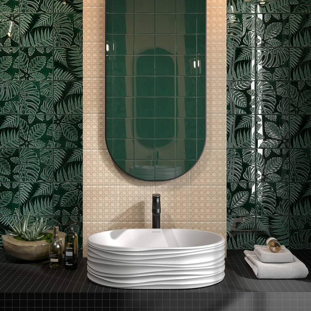 Декор Kerama Marazzi Сантана 2 структура зеленый темный глянцевый 15x15 SFC001